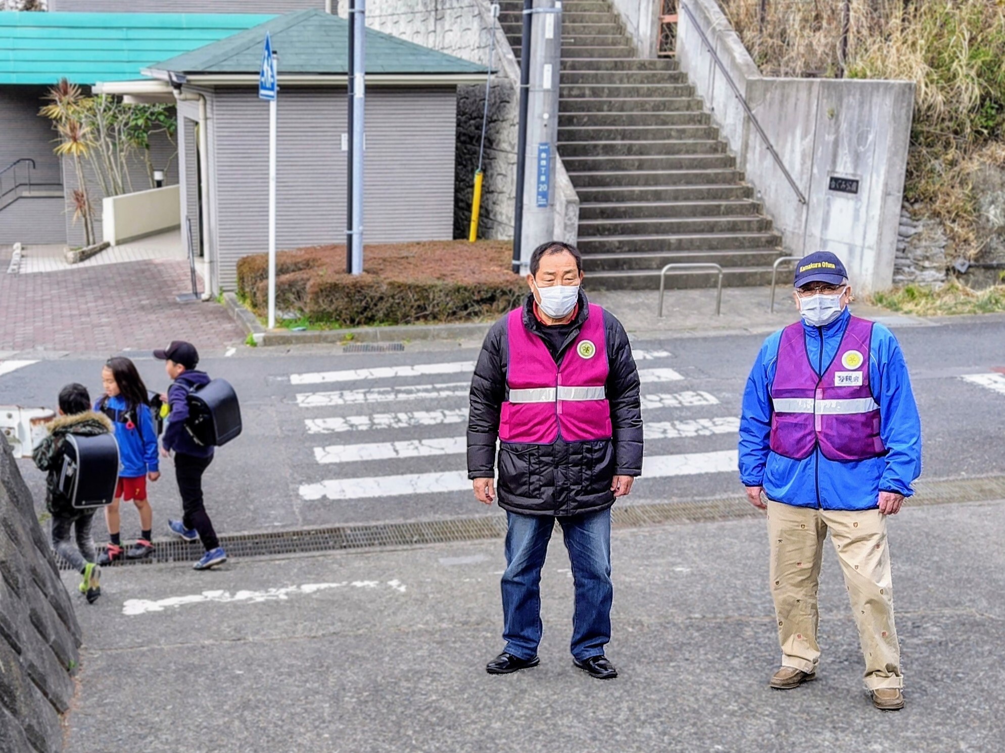 田浦支部 子供の見守り活動 鷹取小学校付近